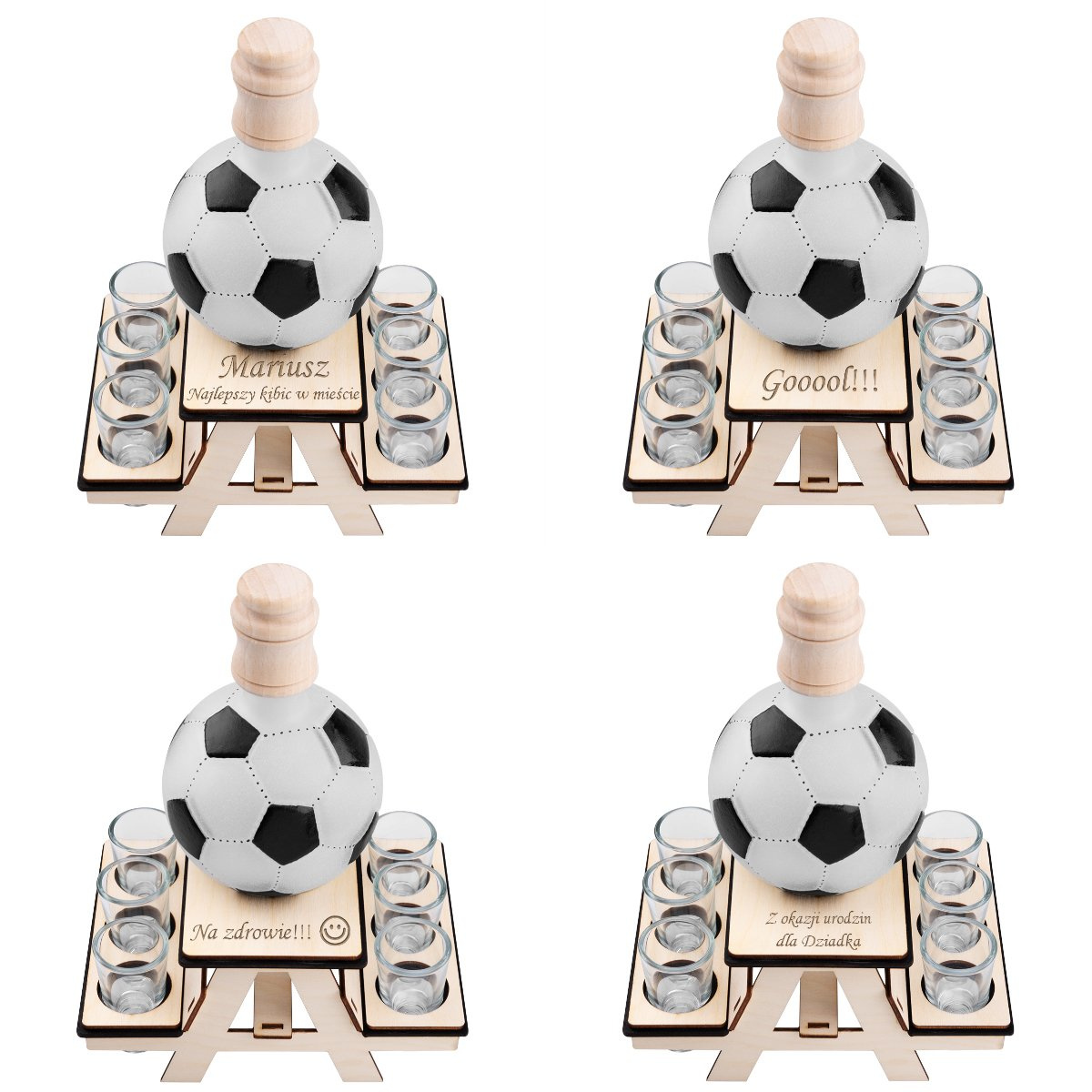 Szukasz prezentu, który wywoła prawdziwe emocje u fana piłki nożnej? Nasza karafka piłka do whisky z grawerem to produkt, który łączy sportową pasję z elegancją. Ten unikalny zestaw, składający się z karafki w kształcie futbolówki oraz sześciu pasujących kieliszków, to obowiązkowy element wyposażenia barku każdego kibica. Wykonany z grubego, wysokiej jakości szkła, idealnie eksponuje barwę ulubionego trunku, a drewniana podstawa dodaje całości szlachetnego charakteru.