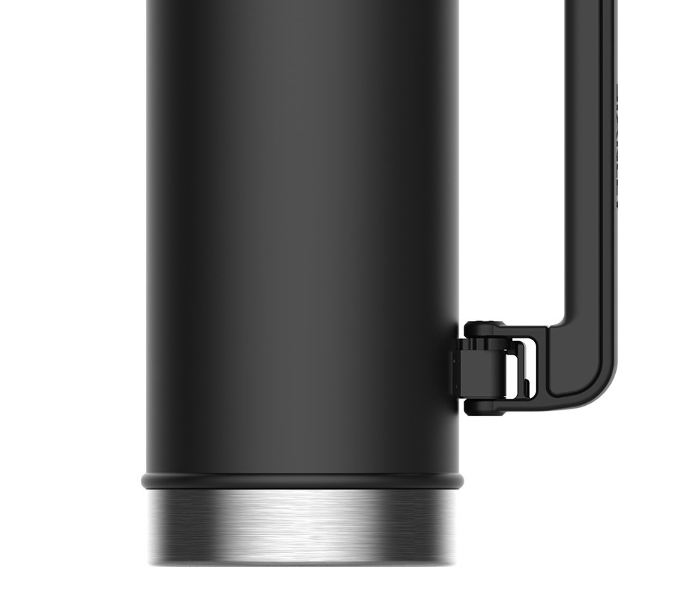 Przy tak dużej pojemności, ergonomia ma kluczowe znaczenie. Stanley wyposażył ten model w solidną, składaną rączkę z silikonowym wykończeniem, która blokuje się w dwóch pozycjach, ułatwiając precyzyjne nalewanie napoju. Szeroki wlot ułatwia nie tylko napełnianie i wrzucanie kostek lodu, ale także dokładne mycie termosu po powrocie z wyprawy. Zakrętka o pojemności 230 ml służy jako wygodny, izolowany kubek, który chroni dłonie przed poparzeniem. Korki i uszczelki zostały zaprojektowane tak, aby zapewnić 100% szczelności w każdej pozycji – termos Stanley Legendary Classic 2.3L może bezpiecznie leżeć na dnie bagażnika Twojego samochodu.